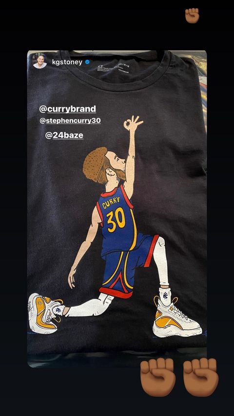 博球00701月10日讯 今日,勇士球员斯蒂芬-库里个人品牌的设计师在Instagram上晒出了以库里在替补席做出勇士后卫肯特-贝兹莫尔经典