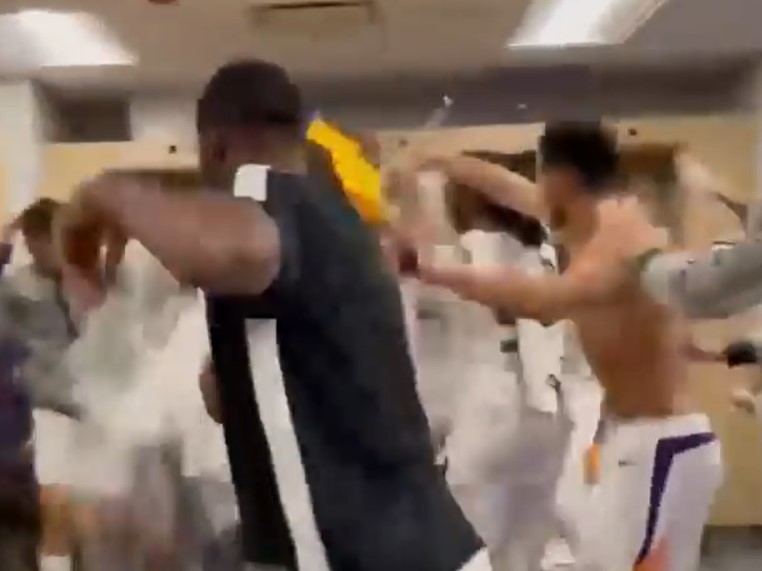 博球00701月10日讯 今日,太阳球员克里斯-保罗更新了个人Instagram Story,晒出太阳更衣室赛后欢庆队友米卡尔-布里奇斯砍下