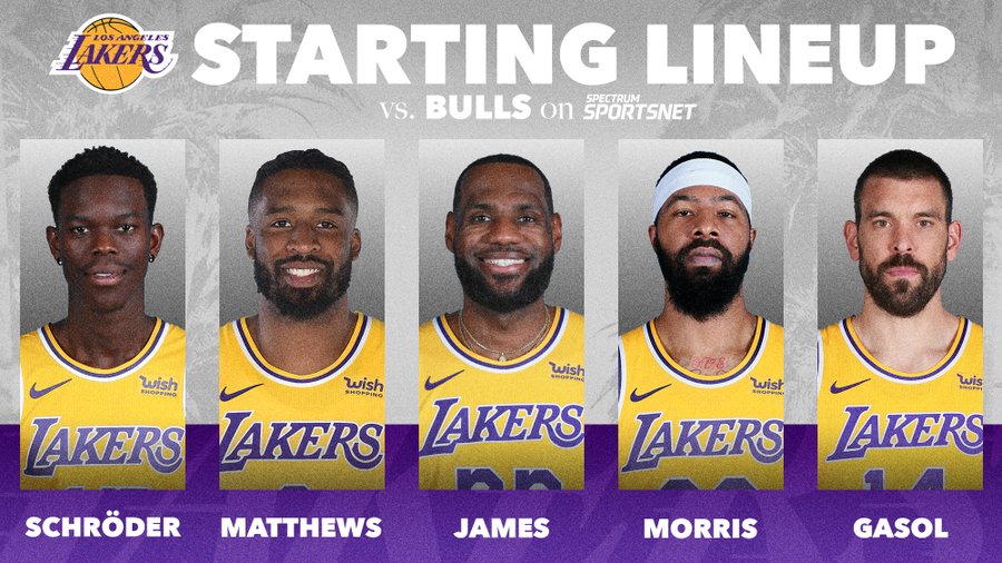 博球00701月09日讯 湖人官方今日赛前公布了本场首发阵容。 湖人首发:勒布朗-詹姆斯、丹尼斯-施罗德、韦斯利-马修斯、马基夫-莫里斯、马