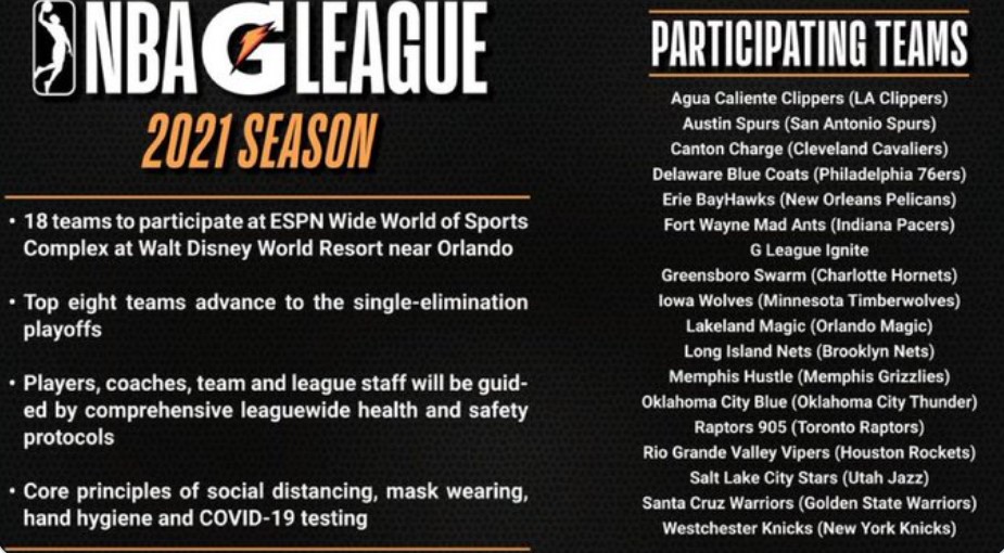 发展联盟官方宣布将于2月在迪士尼开赛,共18支球队参赛