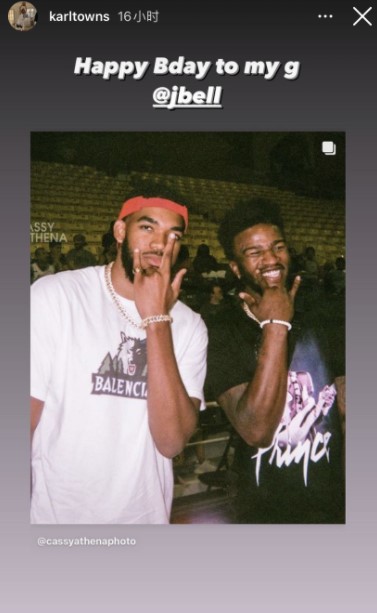 博球00701月09日讯 今日,森林狼球员卡尔-安东尼-唐斯更新Instagram Story,晒照为前队友乔丹-贝尔送上生日祝福。 乔丹-