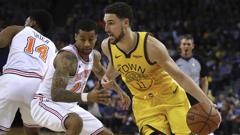 两年前的今天,克莱-汤普森仅用4次运球便砍下43分
