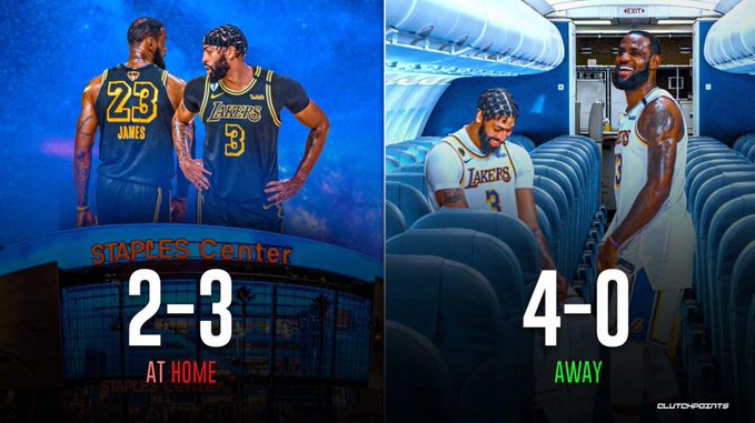 赛季至今湖人主场2胜3负,客场4战全胜