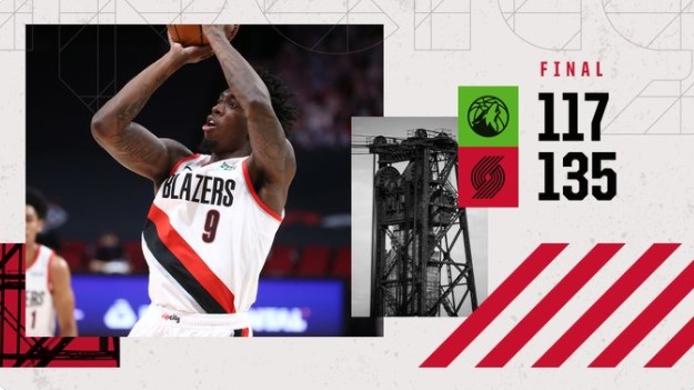 博球0071月8日讯 今天NBA常规赛开拓者主场对阵森林狼的比赛已经结束。全场战罢,开拓者以135-117战胜森林狼。 本场比赛,开拓者后卫