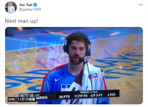 博球00701月08日讯 今天,篮网以122-109战胜76人。 赛后,篮网老板蔡崇信转发了球员乔-哈里斯场边的采访视频,并表示:“总