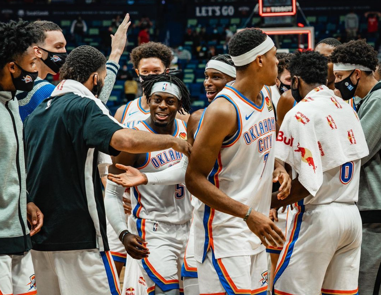 博球00701月07日讯 今日常规赛,雷霆客场以111-110险胜鹈鹕,收获了本场比赛的胜利。 赛后,雷霆更新了官方Ins晒出球队赛后球场合