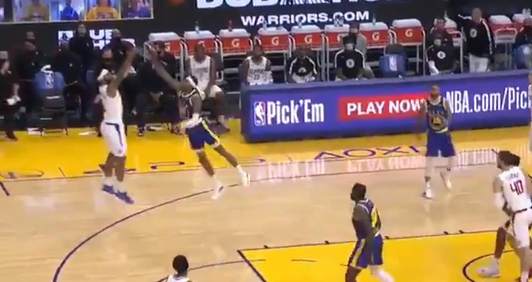 博球00701月07日讯 今天快船对阵勇士的比赛正在进行,首节快船21-15暂时领先勇士。 快船前锋马库斯-莫里斯在首节末段投进三分,命中本