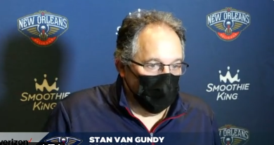 博球00701月07日讯 今天,鹈鹕110-111不敌雷霆。赛后,鹈鹕主帅斯坦-范甘迪接受了记者的采访。 谈到绝杀失败,范甘迪说:“我