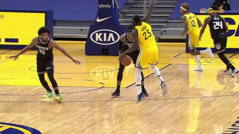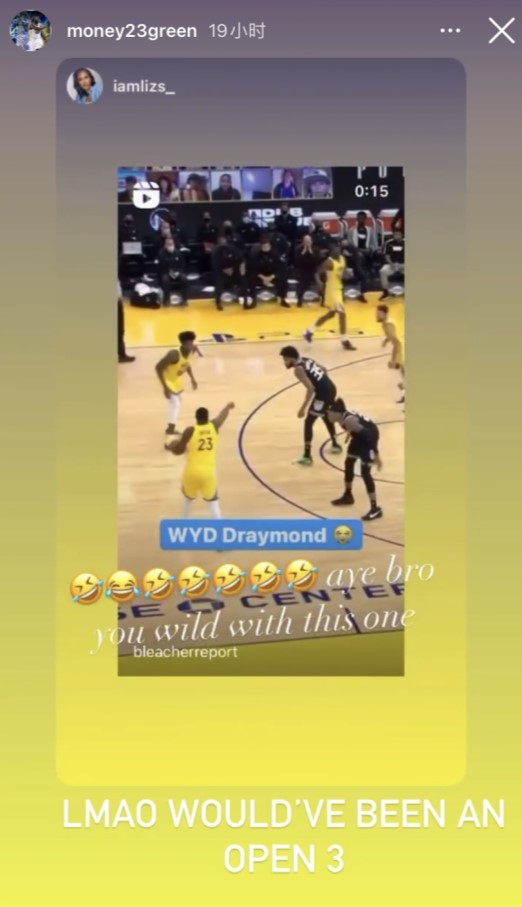 博球00701月07日讯 今日,有网友在Instagram Story上晒出了勇士前锋德雷蒙德-格林在对国王的比赛中的某一回合动作夸张地指挥