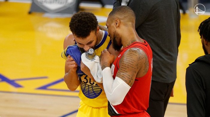 博球00701月05日讯 北京时间昨天,勇士官方更新推特,晒出斯蒂芬-库里与达米安-利拉德赛后在场边聊天的照片。 随后,勇士后卫肯特-贝兹